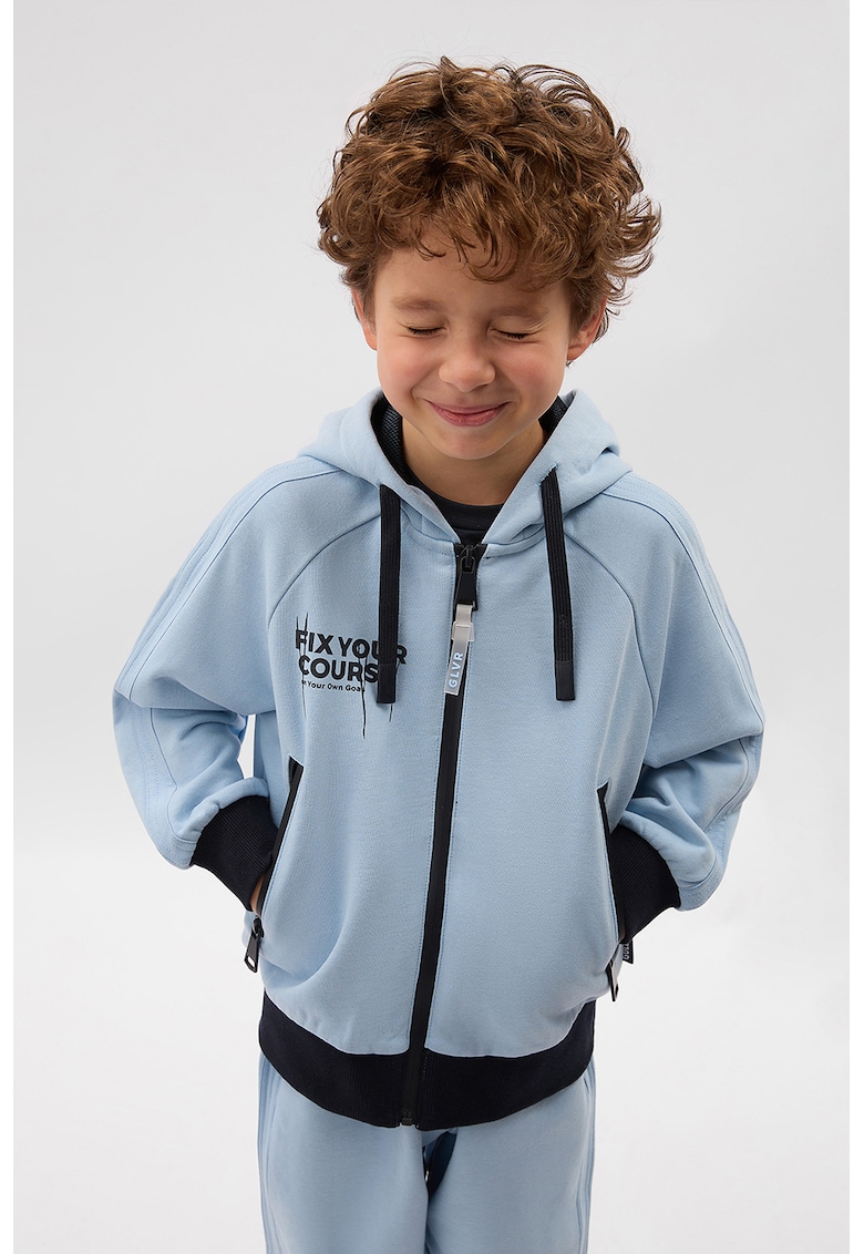 - albastru deschis Imprimeu: text Croiala: regular fit Material: bumbac Lungime maneca: maneca lunga Sistem inchidere: fermoar Colectie: primavara