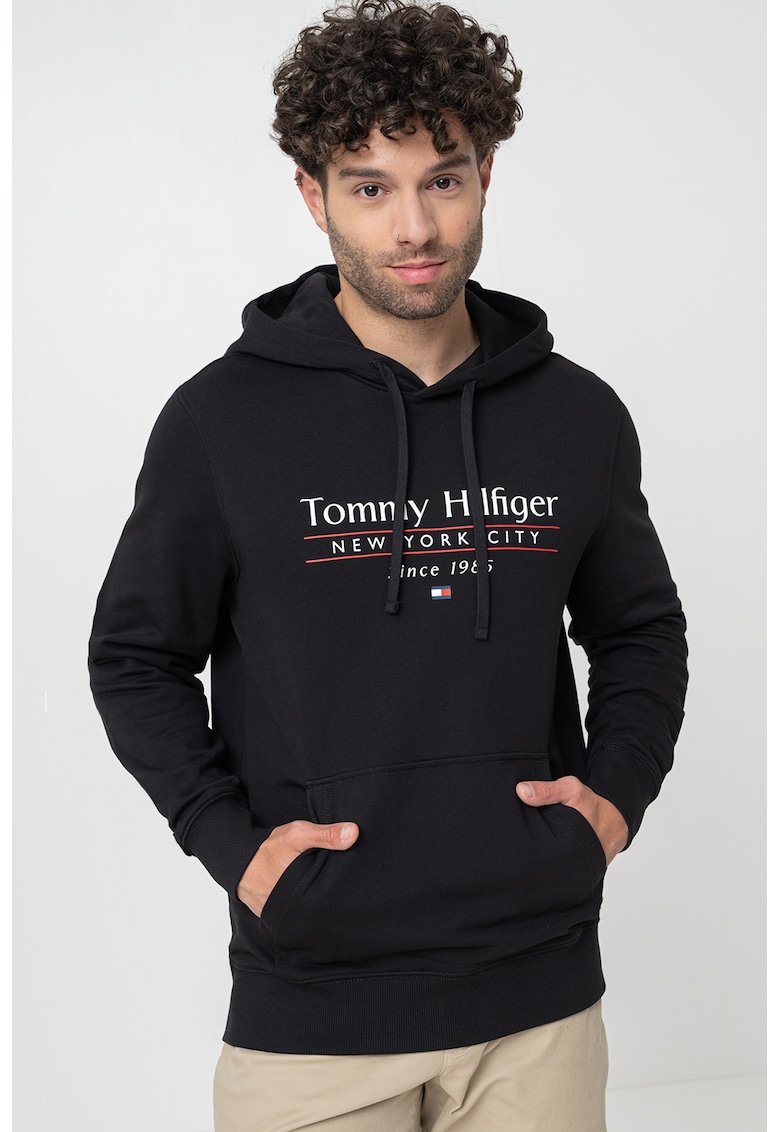 - negru Imprimeu: logo Material: bumbac Croiala: regular fit Sistem inchidere: fara inchidere Buzunare: kangaroo Lungime maneca: maneca lunga Compozitie Exterior: 100% bumbac organic Info model Modelul poarta un produs de marimea M. Marimi model: 179 cm inaltime