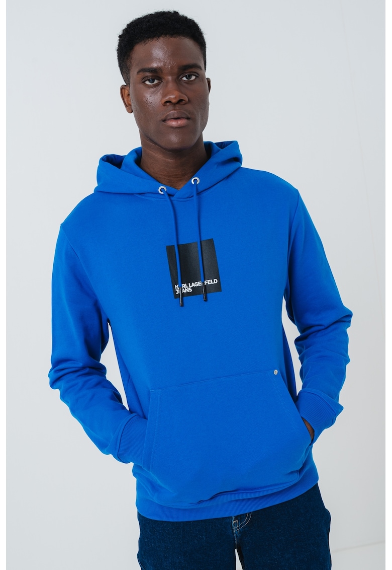 Caracteristici Tip produs: hanorac Culoare: albastru royal Imprimeu: logo Material: bumbac organic Croiala: regular fit Sistem inchidere: fara inchidere Buzunare: kangaroo Maneci: cu mansete Lungime maneca: maneca lunga Compozitie Exterior: 100% bumbac organic Info model Modelul poarta un produs de marimea M. Marimi model: 184 cm inaltime
