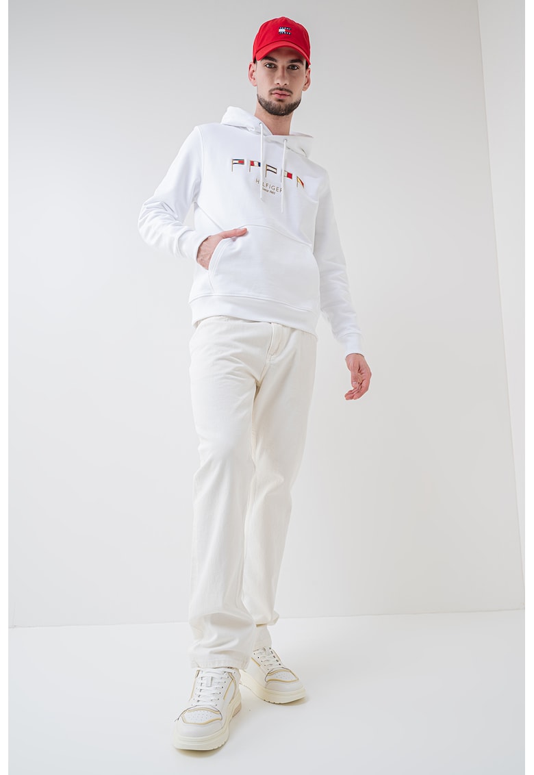 Caracteristici Tip produs: hanorac Culoare: alb Imprimeu: logo Material: bumbac Croiala: regular fit Sistem inchidere: fara inchidere Buzunare: cangur Lungime maneca: maneca lunga Compozitie Exterior: 100% bumbac Info model Modelul poarta un produs de marimea M. Marimi model: 190 cm inaltime