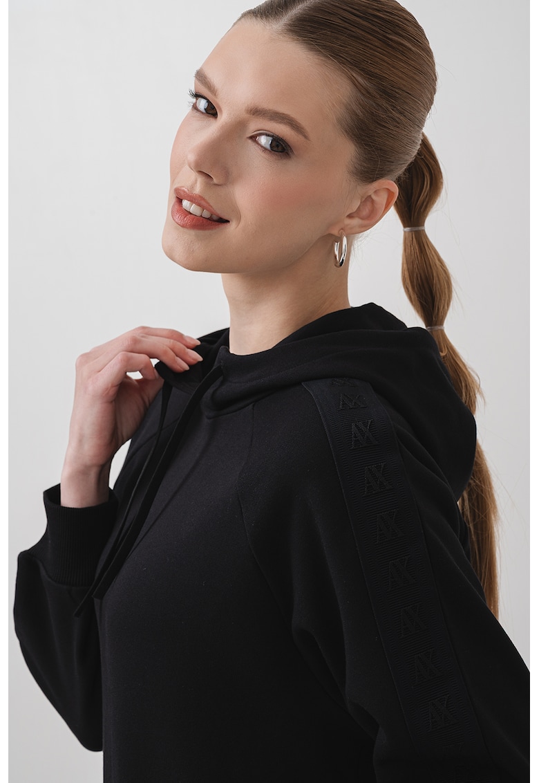 Caracteristici Tip produs: hanorac Culoare: negru Imprimeu: uni Croiala: regular fit Sistem inchidere: fara inchidere Material: bumbac Maneci: raglan Lungime maneca: maneca lunga Buzunare: kangaroo Compozitie Exterior: 100% bumbac Info model Modelul poarta un produs de marimea S. Marimi model: 176 cm inaltime