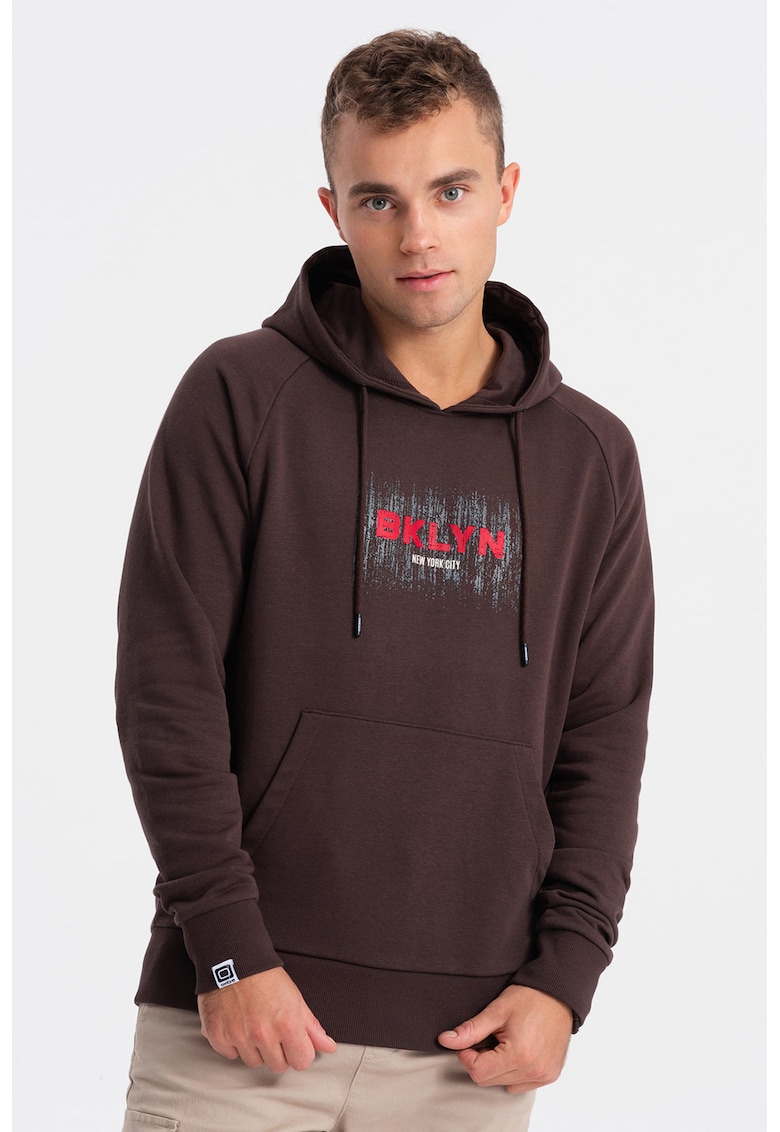 Caracteristici Tip produs: hanorac Culoare: maro inchis Imprimeu: grafic Material: bumbac Croiala: regular fit Sistem inchidere: fara inchidere Buzunare: unul