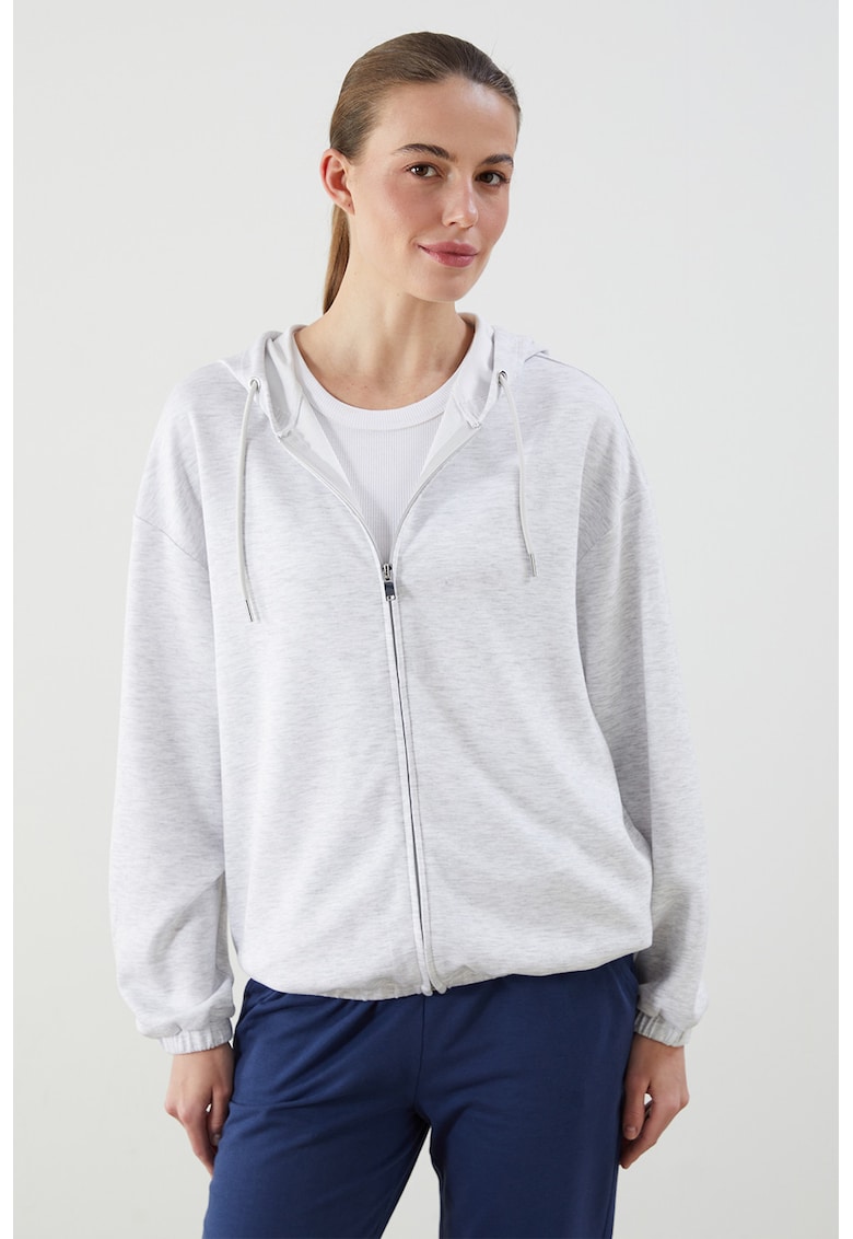 Caracteristici Tip produs: hanorac Culoare: gri deschis melange Imprimeu: uni Croiala: regular fit Sistem inchidere: fermoar Material: poliester