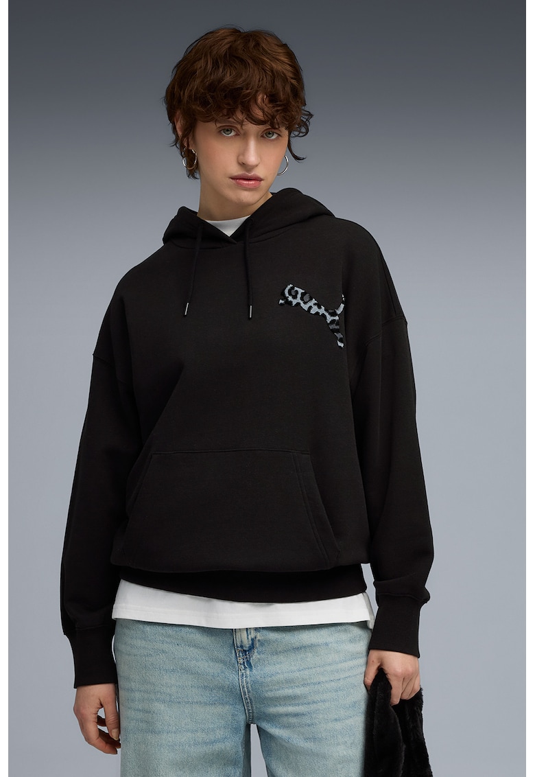 Caracteristici Tip produs: hanorac Culoare: negru Imprimeu: uni Croiala: lejer Material: poliester