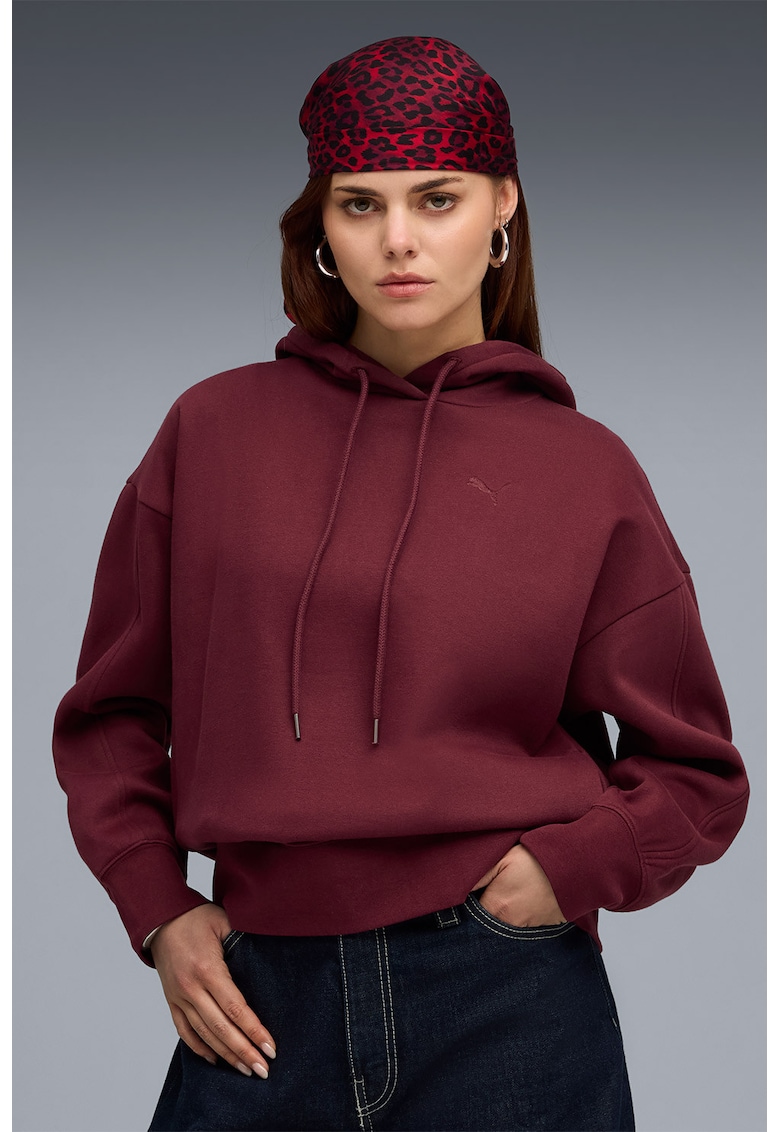 Caracteristici Tip produs: hanorac Culoare: visiniu Imprimeu: uni Croiala: lejer Sistem inchidere: fara inchidere Material: poliester