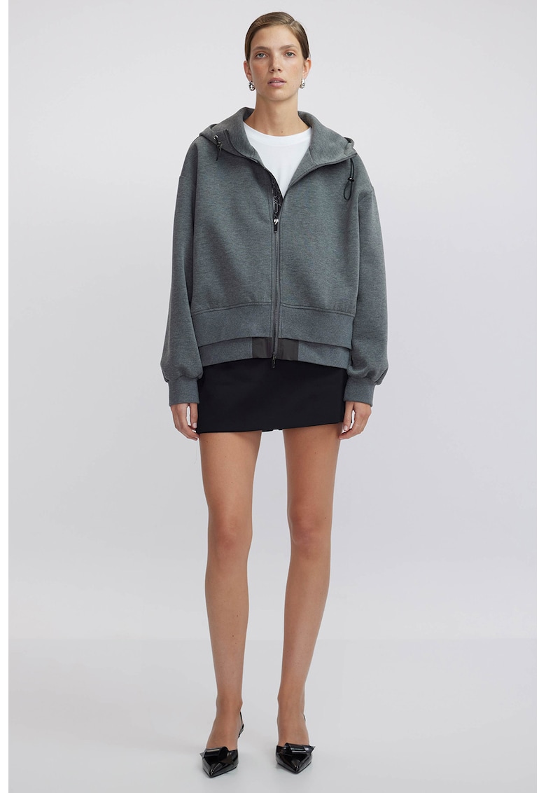 Caracteristici Tip produs: hanorac Culoare: gri inchis melange Imprimeu: uni Croiala: regular fit Sistem inchidere: fermoar Material: poliester