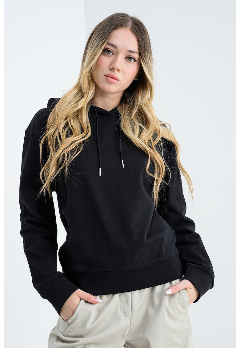 Caracteristici Tip produs: hanorac Culoare: negru Imprimeu: uni Croiala: regular fit Material: bumbac Lungime maneca: maneca lunga Compozitie Exterior: 86% bumbac