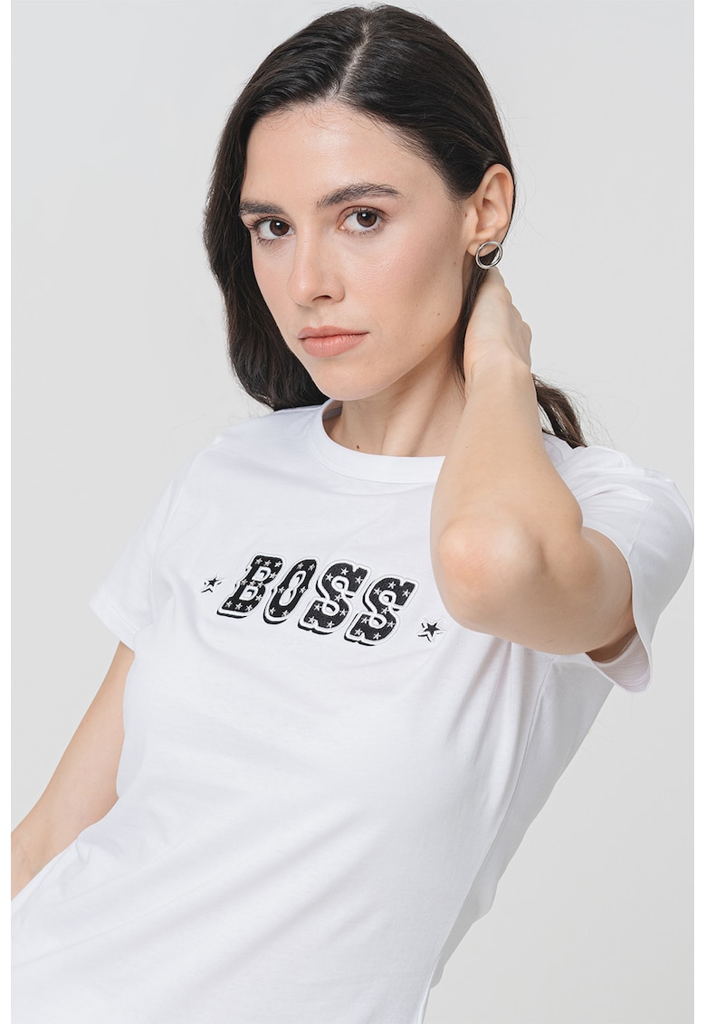 - argintiu Imprimeu: logo Material: bumbac Croiala: regular fit Model: decolteu la baza gatului Lungime maneca: maneca scurta Compozitie Exterior: 100% bumbac Info model Modelul poarta un produs de marimea S. Marimi model: 177 cm inaltime