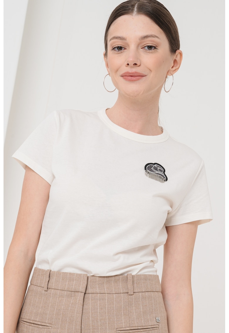 - argintiu Imprimeu: uni Material: bumbac Croiala: regular fit Model: decolteu la baza gatului Lungime maneca: maneca scurta Compozitie Exterior: 100% bumbac Info model Modelul poarta un produs de marimea S. Marimi model: 170 cm inaltime