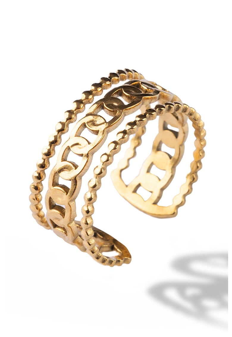 Caracteristici Tip produs: inel Material: inox Culoare: auriu Ambalaj: produsul se livreaza in ambalaj personalizat. Compozitie Compozitie: otel inoxidabil Pietre: fara pietre Dimensiuni Informatii suplimentare: a se evita socurile mecanice si termice