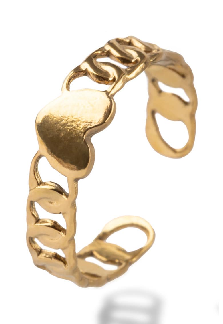 Caracteristici Tip produs: inel Material: inox Culoare: auriu Ambalaj: produsul se livreaza in ambalaj personalizat. Compozitie Compozitie: inox Pietre: fara pietre Placaj: aur galben de 18k Dimensiuni Lungime: one size Informatii suplimentare: a se evita lovirea