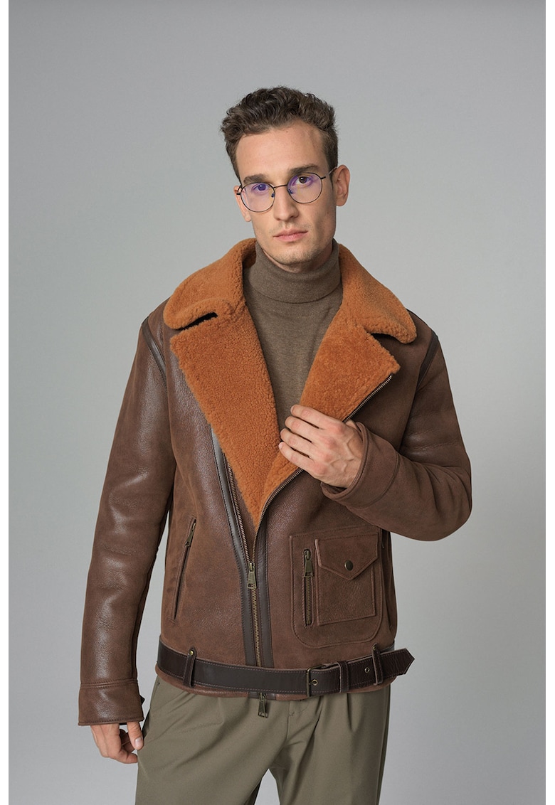 Caracteristici Tip produs: jacheta Culoare: maro Material: piele naturala Croiala: regular fit Imprimeu: uni Gluga: fara gluga Guler: cu revere Lungime maneca: maneca lunga Buzunare: laterale