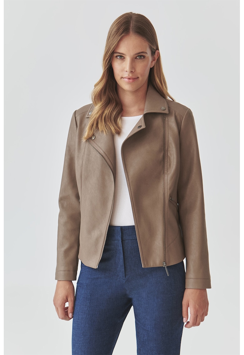 Caracteristici Tip produs: jacheta Culoare: maro deschis Imprimeu: uni Material: piele ecologica Croiala: regular fit Guler: cu revere si capse Gluga: fara gluga Lungime maneca: maneca lunga Buzunare: cu fermoar Sistem inchidere: fermoar Compozitie Exterior: 100% poliester