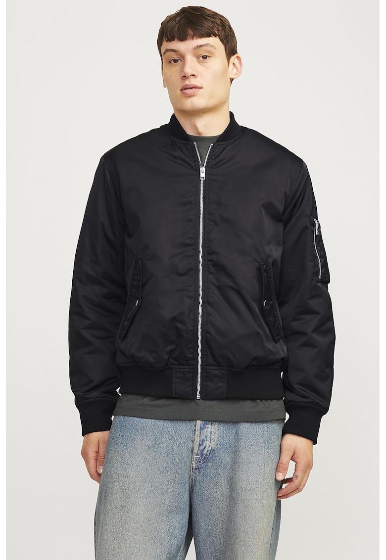 Caracteristici Tip produs: jacheta Culoare: negru Material: poliester Croiala: regular fit Imprimeu: uni Gluga: fara gluga Guler: baseball Maneci: cu mansete elastice Lungime maneca: maneca lunga Buzunare: 2 cu clapa