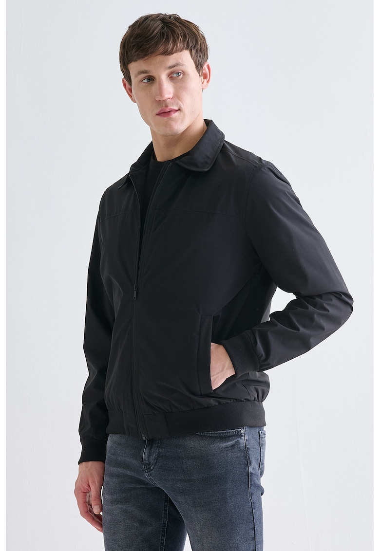 Caracteristici Tip produs: jacheta Culoare: negru Material: sintetic Croiala: regular fit Imprimeu: uni Gluga: fara gluga Lungime maneca: maneca lunga Buzunare: laterale Sistem inchidere: fermoar Compozitie Exterior: 100% poliester Captuseala: 100% poliester