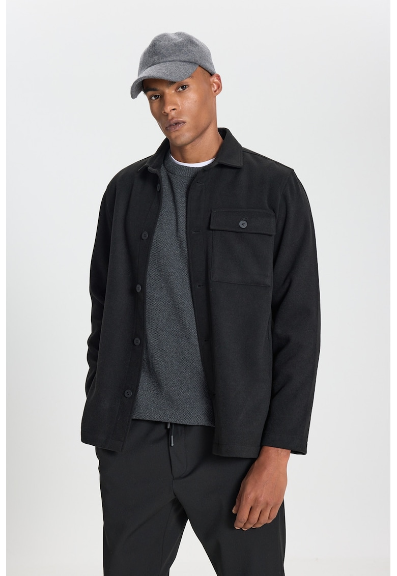 - viscoza Croiala: lejer Imprimeu: uni Guler: clasic Lungime maneca: maneca lunga Buzunare: 1 pe piept Sistem inchidere: nasturi Compozitie Exterior: 79% poliester