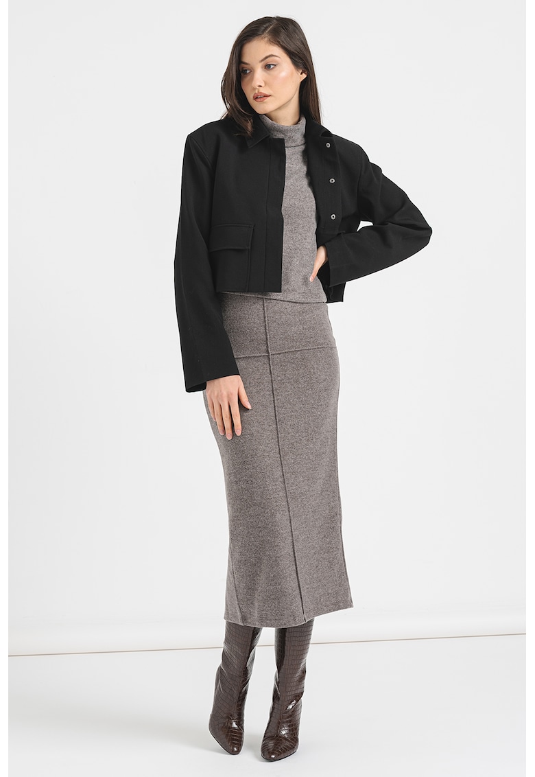 - viscoza Croiala: crop Gluga: fara gluga Lungime maneca: maneca lunga Buzunare: 2 pe partea din fata Sistem inchidere: capse Compozitie Exterior: 75% poliester