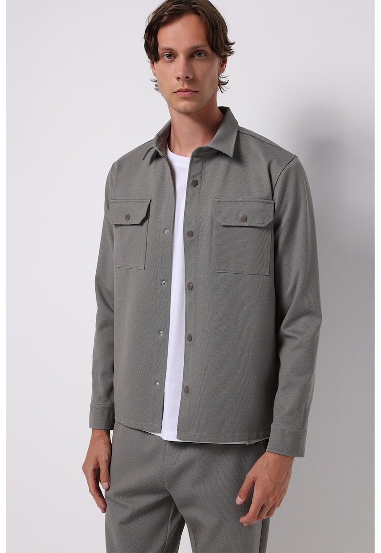 - viscoza Croiala: regular fit Imprimeu: uni Gluga: fara gluga Lungime maneca: maneca lunga Buzunare: 2 pe piept Sistem inchidere: capse Compozitie Exterior: 80% poliester