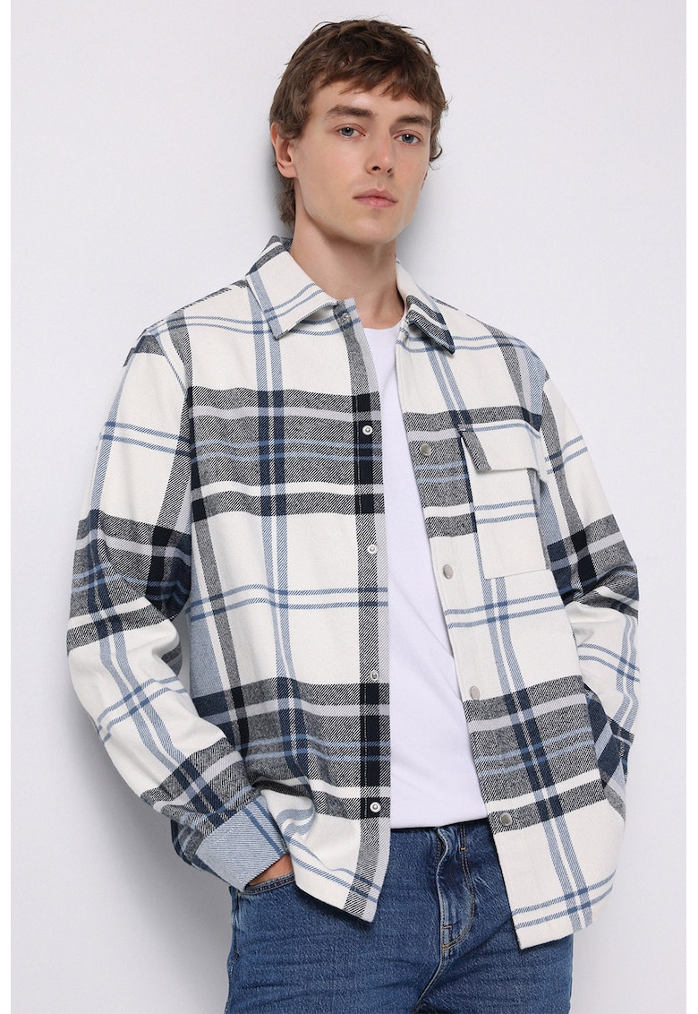 - gri inchis Material: bumbac Croiala: regular fit Imprimeu: carouri Gluga: fara gluga Lungime maneca: maneca lunga Buzunare: pe piept Sistem inchidere: capse Compozitie Exterior: 100% bumbac