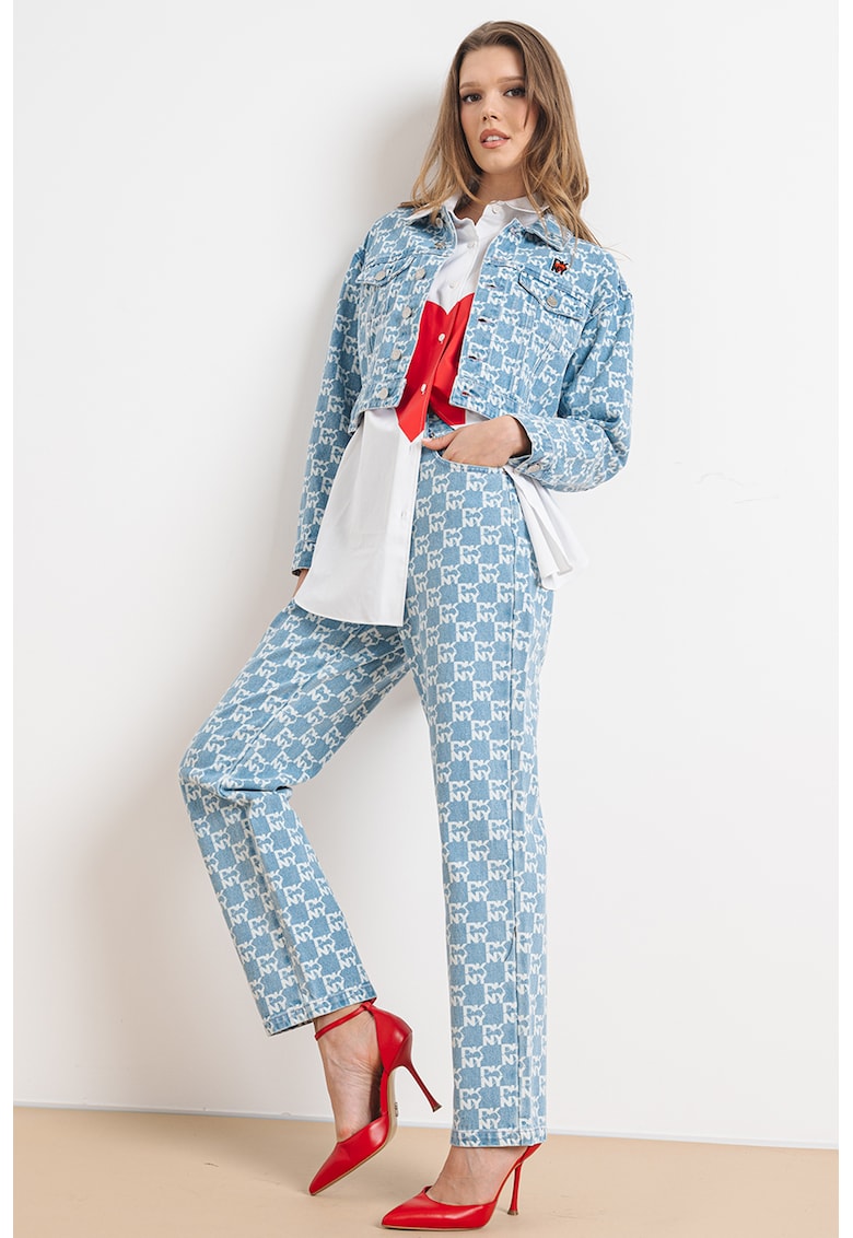 - albastru Imprimeu: logo Material: denim Croiala: crop Gluga: fara gluga Lungime maneca: maneca lunga Buzunare: 2 aplicate pe piept Sistem inchidere: nasturi Compozitie Exterior: 100% bumbac Info model Modelul poarta un produs de marimea S. Marimi model: 176 cm inaltime