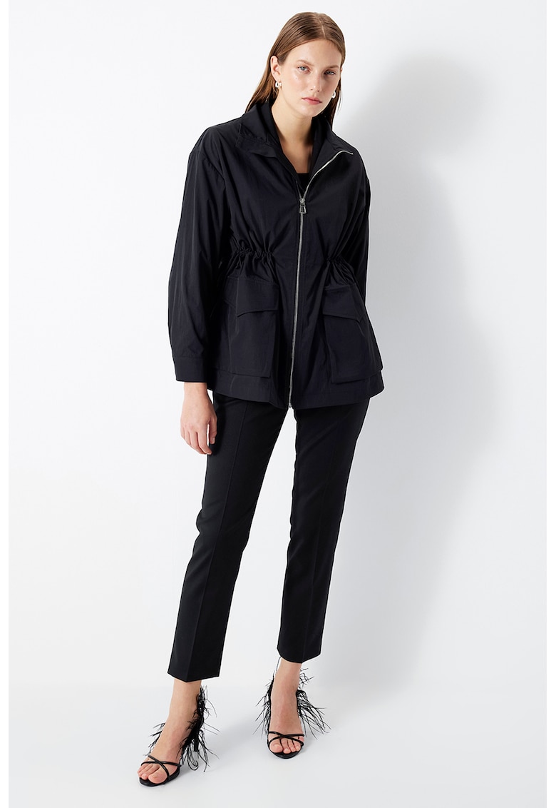 Caracteristici Tip produs: jacheta Culoare: negru Imprimeu: uni Material: poliamida Croiala: regular fit Gluga: fara gluga Lungime maneca: maneca lunga Buzunare: 2 cu clapa Detalii: talie ajustabila Sistem inchidere: fermoar Compozitie Exterior: 100% poliamida