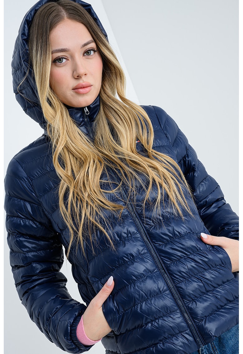 Caracteristici Tip produs: geaca Culoare: bleumarin Imprimeu: uni Material: poliamida Croiala: regular fit Gluga: fara gluga Lungime maneca: maneca lunga Buzunare: laterale Sistem inchidere: fermoar Compozitie Exterior: 100% poliamida Info model Modelul poarta un produs de marimea S. Marimi model: 175 cm inaltime