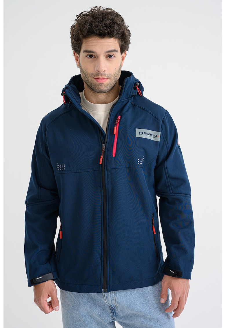 Caracteristici Tip produs: jacheta Culoare: bleumarin Material: sintetic Croiala: regular fit Imprimeu: logo Gluga: cu gluga Guler: inalt Maneci: ajustabila
