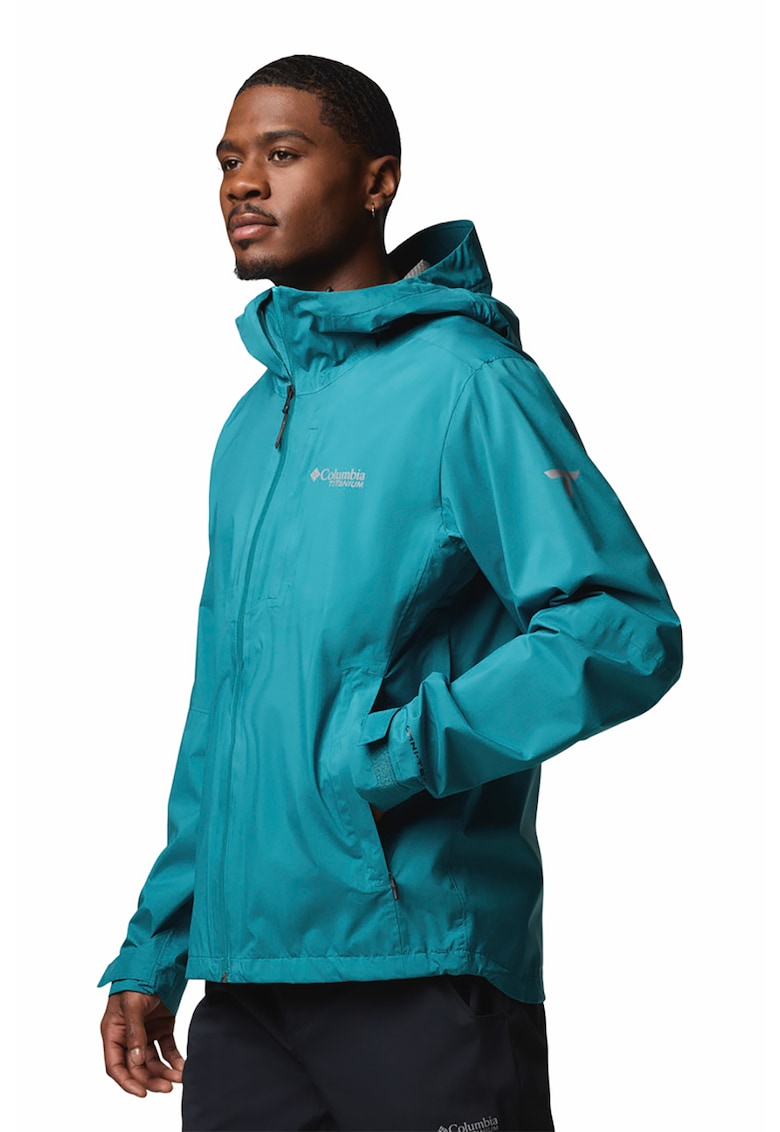 Caracteristici generale Tip produs: jacheta Stil: cu gluga Sport: trekking Culoare: albastru aquamarin Imprimeu: uni Croiala: regular fit Material: poliester Sistem inchidere: fermoar Tehnologie material: omni tech® Sezon: primavara-vara