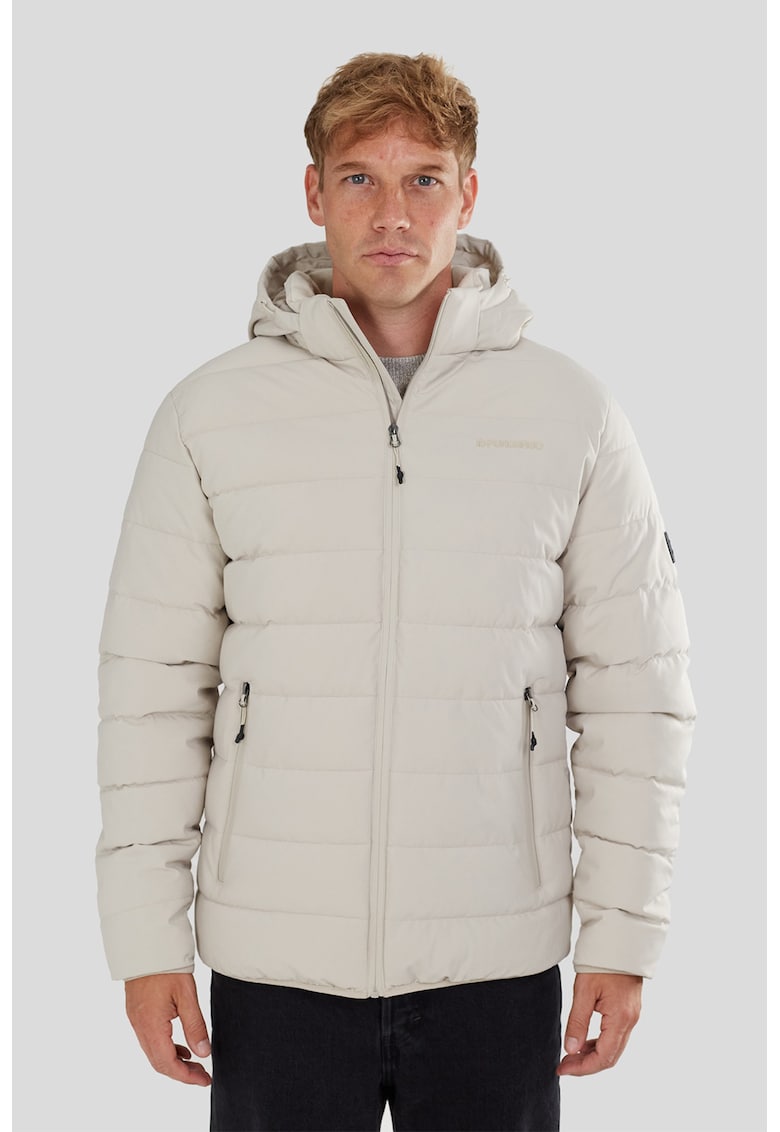 Caracteristici generale Tip produs: geaca Stil: cu gluga Sport: trekking Culoare: alb murdar Imprimeu: uni Croiala: regular fit Material: poliester Sistem inchidere: fermoar Nivel impermeabilitate: 3000 mm Detalii material Exterior: 100% poliester Captuseala: sintetic Umplutura: sintetic