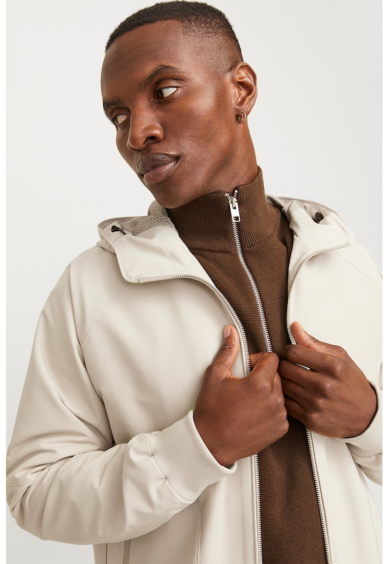 Caracteristici Tip produs: jacheta Culoare: alb fildes Material: sintetic Croiala: regular fit Imprimeu: uni Gluga: cu gluga Guler: scurt Lungime maneca: maneca lunga Buzunare: 2 cu fermoar Sistem inchidere: fermoar Compozitie Exterior: 50% poliester reciclat