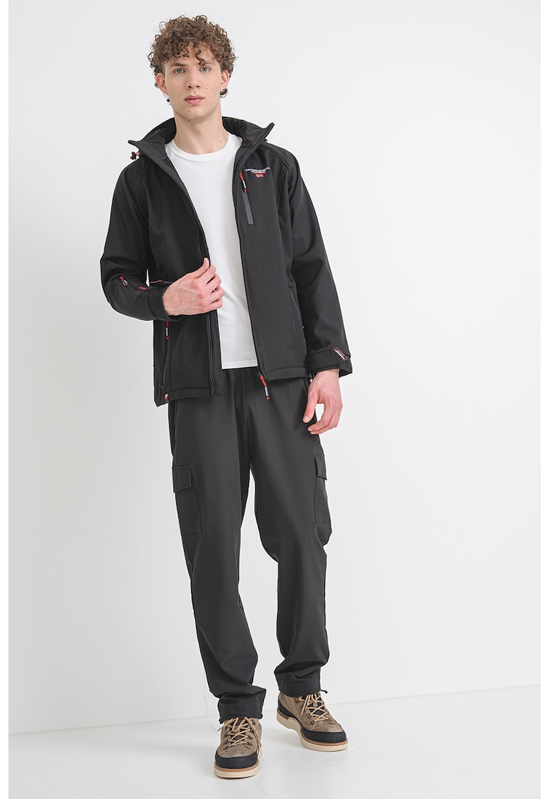 Caracteristici Tip produs: jacheta Culoare: negru Material: sintetic Croiala: regular fit Imprimeu: logo Gluga: cu gluga Guler: guler ridicat in partea din fata Lungime maneca: maneca lunga Buzunare: cu fermoar