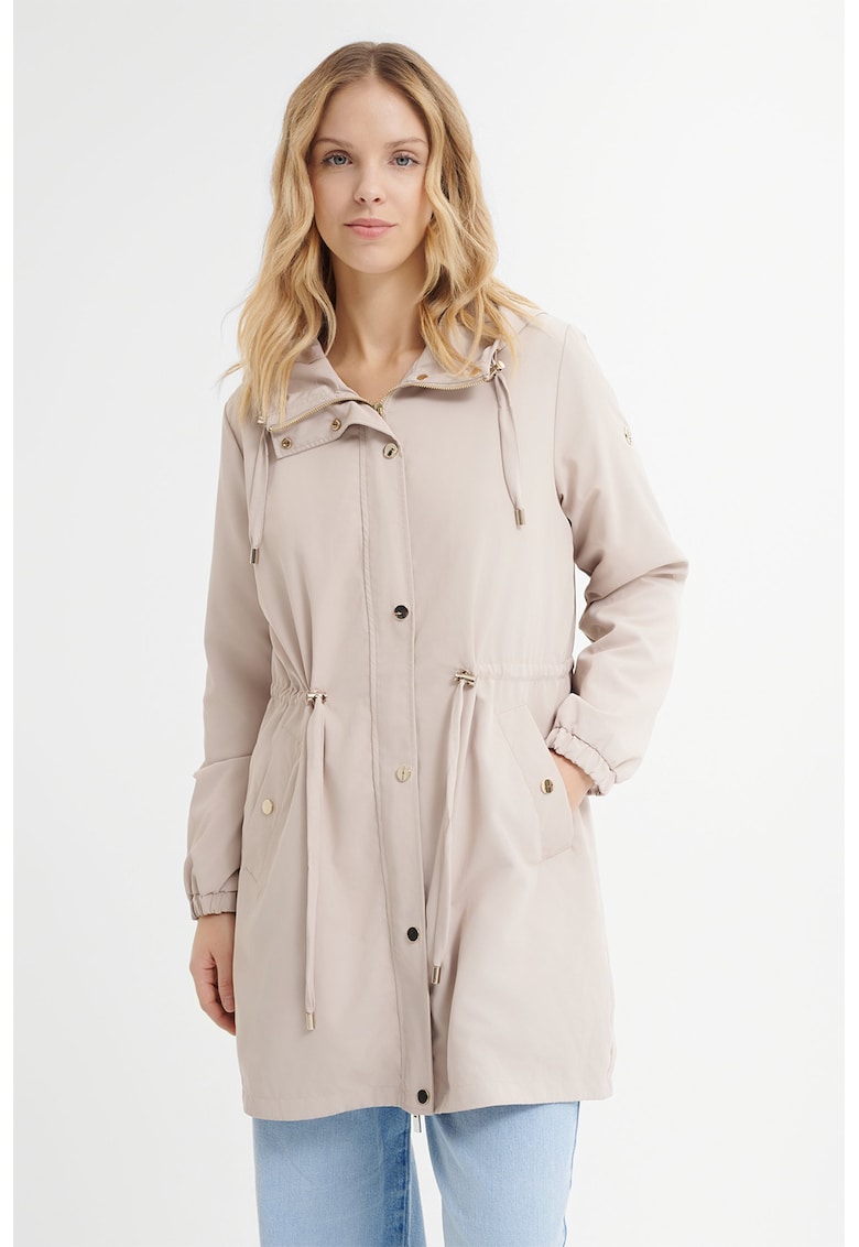 Caracteristici Tip produs: jacheta Culoare: maro nisip Imprimeu: uni Material: sintetic Croiala: regular fit Gluga: cu gluga Lungime maneca: maneca lunga Buzunare: 2 laterale Detalii: snur pentru ajustare Sistem inchidere: fermoar