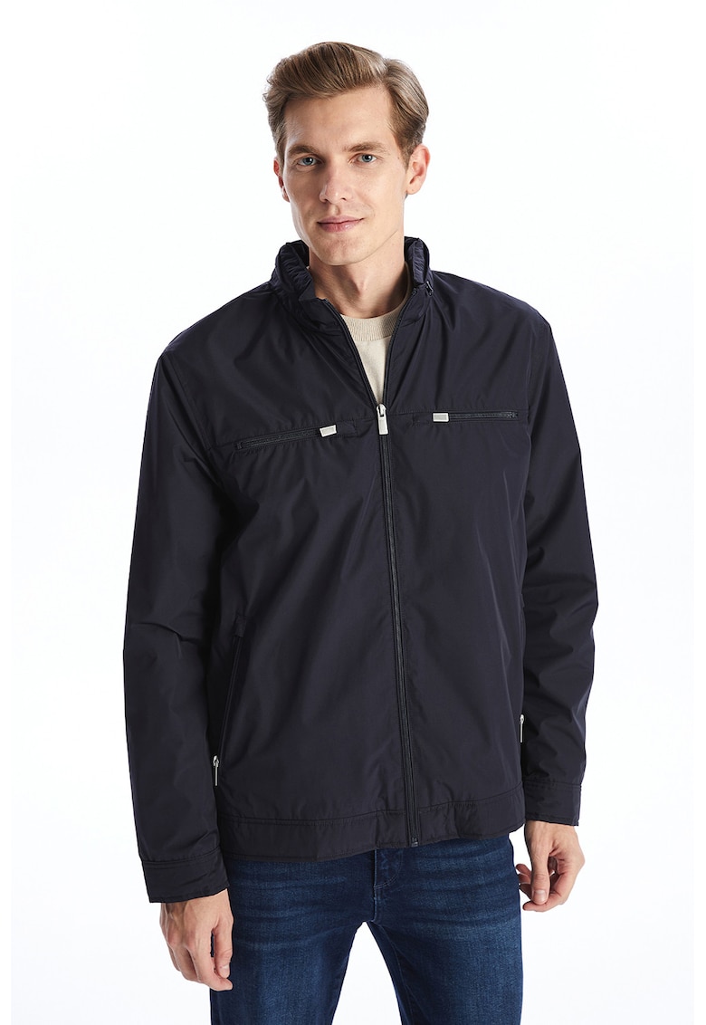 Caracteristici Tip produs: jacheta Culoare: bleumarin Material: sintetic Croiala: regular fit Imprimeu: uni Gluga: cu gluga Lungime maneca: maneca lunga Buzunare: 4 cu fermoar Detalii: gluga detasabila Sistem inchidere: fermoar Compozitie Exterior: 100% poliester Captuseala: 100% poliester