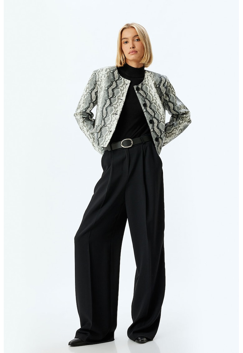 - alb murdar Imprimeu: animal print Material: poliester Croiala: regular fit Gluga: fara gluga Lungime maneca: maneca lunga Sistem inchidere: nasturi Compozitie Exterior: 100% poliester Captuseala: 100% poliester