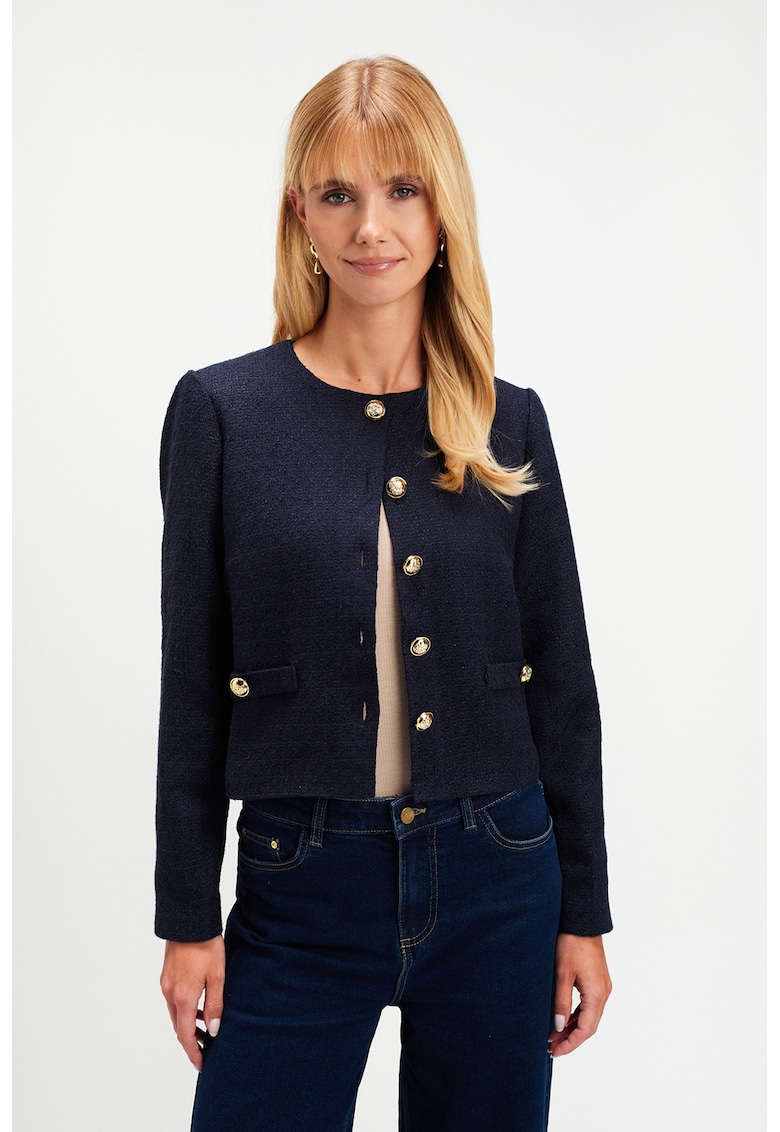 - aspect texturat Sistem inchidere: nasturi Compozitie Exterior: 100% poliester