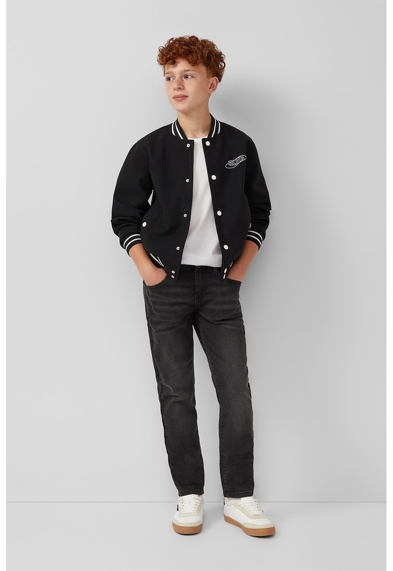 Caracteristici Tip produs: jacheta Culoare: negru Imprimeu: dungi Croiala: regular fit Material: poliester Lungime: scurta Lungime maneca: maneca lunga Sistem inchidere: capse Colectie: toamna