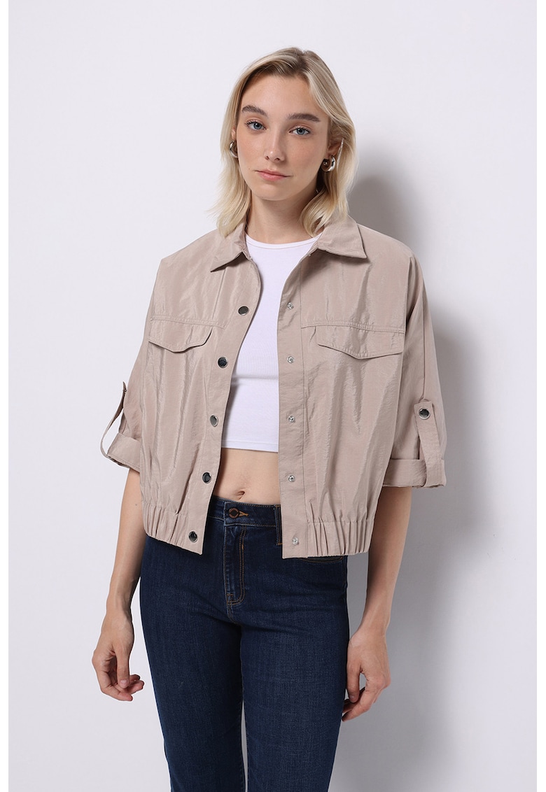 Caracteristici Tip produs: jacheta Culoare: maro deschis Imprimeu: uni Material: sintetic Croiala: regular fit Guler: clasic Gluga: fara gluga Lungime maneca: maneca trei sferturi Sistem inchidere: nasturi Compozitie Exterior: 67% poliester