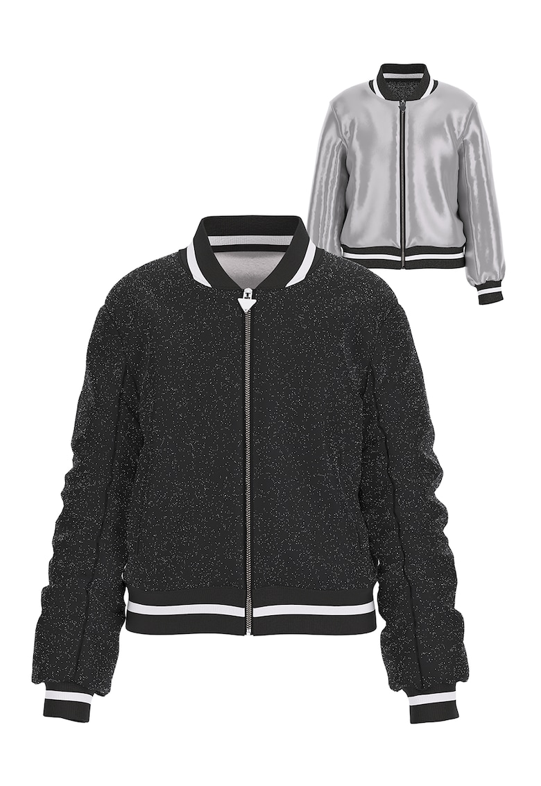 - argintiu Imprimeu: uni Croiala: reversibil Material: poliester Lungime: scurta Lungime maneca: maneca lunga Detalii: aspect stralucitor Sistem inchidere: fermoar Colectie: primavara