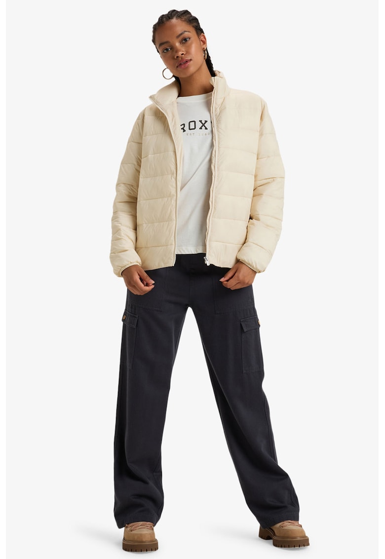 Caracteristici Tip produs: jacheta Culoare: alb murdar Imprimeu: uni Material: nylon Croiala: regular fit Guler: inalt Gluga: fara gluga Lungime maneca: maneca lunga Buzunare: lateral Sistem inchidere: fermoar Compozitie Exterior: 100% nailon reciclat