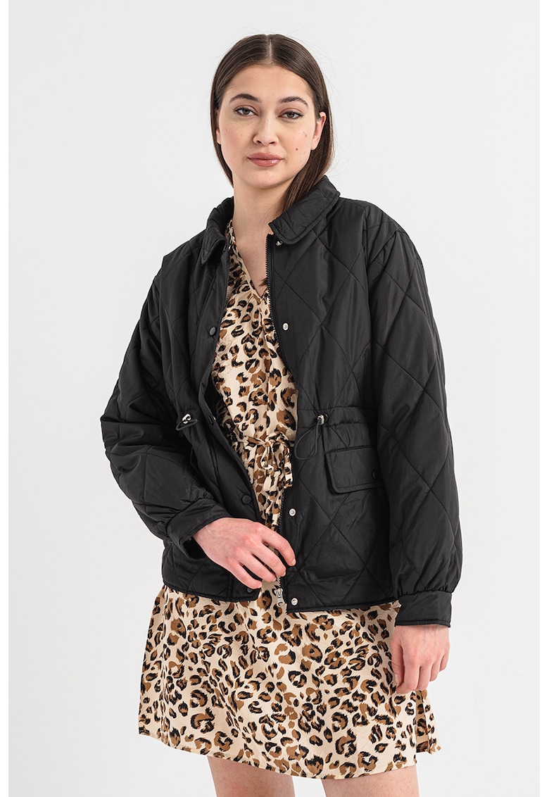 Caracteristici Tip produs: jacheta Culoare: negru Imprimeu: uni Material: poliester Croiala: regular fit Guler: ascutit Lungime maneca: maneca lunga Buzunare: cu clapa Detalii: vatelina