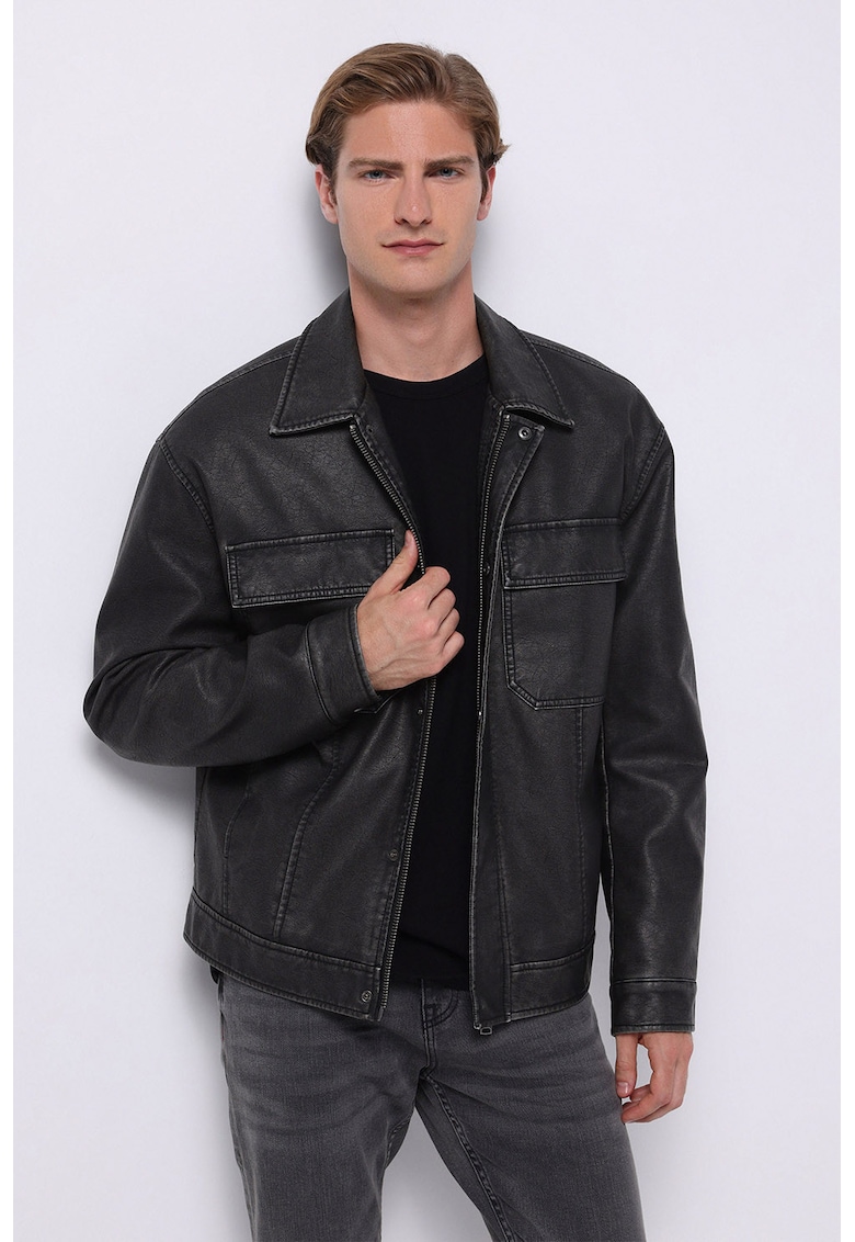 Caracteristici Tip produs: jacheta Culoare: negru Material: piele ecologica Croiala: regular fit Imprimeu: uni Gluga: fara gluga Guler: clasic Lungime maneca: maneca lunga Buzunare: 1