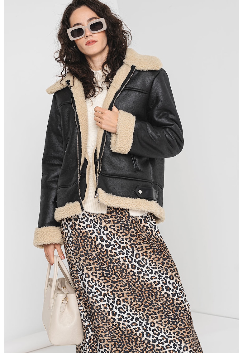 - bej Imprimeu: uni Material: piele ecologica Croiala: regular fit Guler: blana sintetica Gluga: fara gluga Lungime maneca: maneca lunga Sistem inchidere: fermoar Compozitie Exterior: 100% poliester Info model Modelul poarta un produs de marimea S. Marimi model: 175 cm inaltime