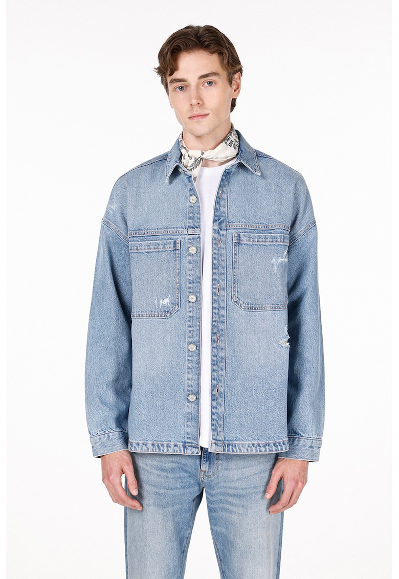 Caracteristici Tip produs: jacheta Culoare: albastru deschis Material: bumbac Croiala: regular fit Imprimeu: uni Gluga: fara gluga Lungime maneca: maneca lunga Buzunare: 2 pe piept Sistem inchidere: nasturi Compozitie Exterior: 99% bumbac