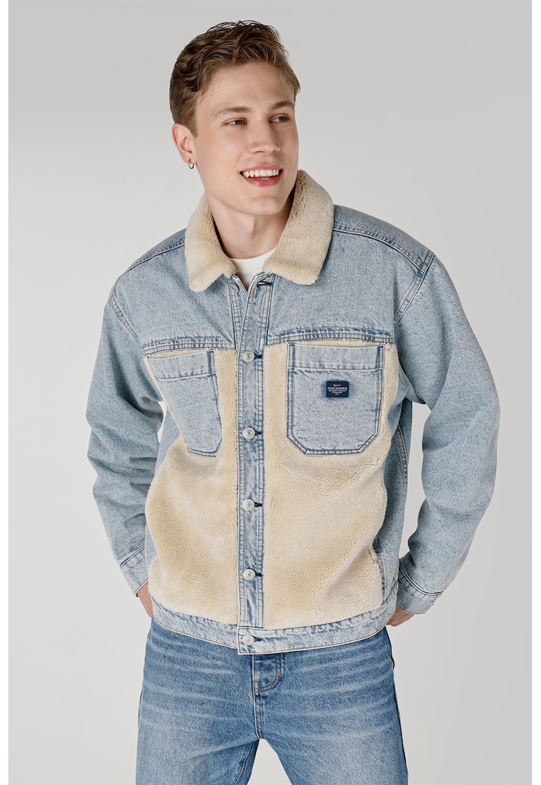 Caracteristici Tip produs: jacheta Culoare: albastru deschis melange Material: denim Croiala: regular fit Imprimeu: uni Gluga: fara gluga Guler: clasic Maneci: cu mansete cu nasturi Lungime maneca: maneca lunga Buzunare: aplicate pe piept Detalii: detalii din material teddy Sistem inchidere: nasturi Compozitie Exterior: 100% bumbac Captuseala: 100% poliester Material garnituri: 100% poliester