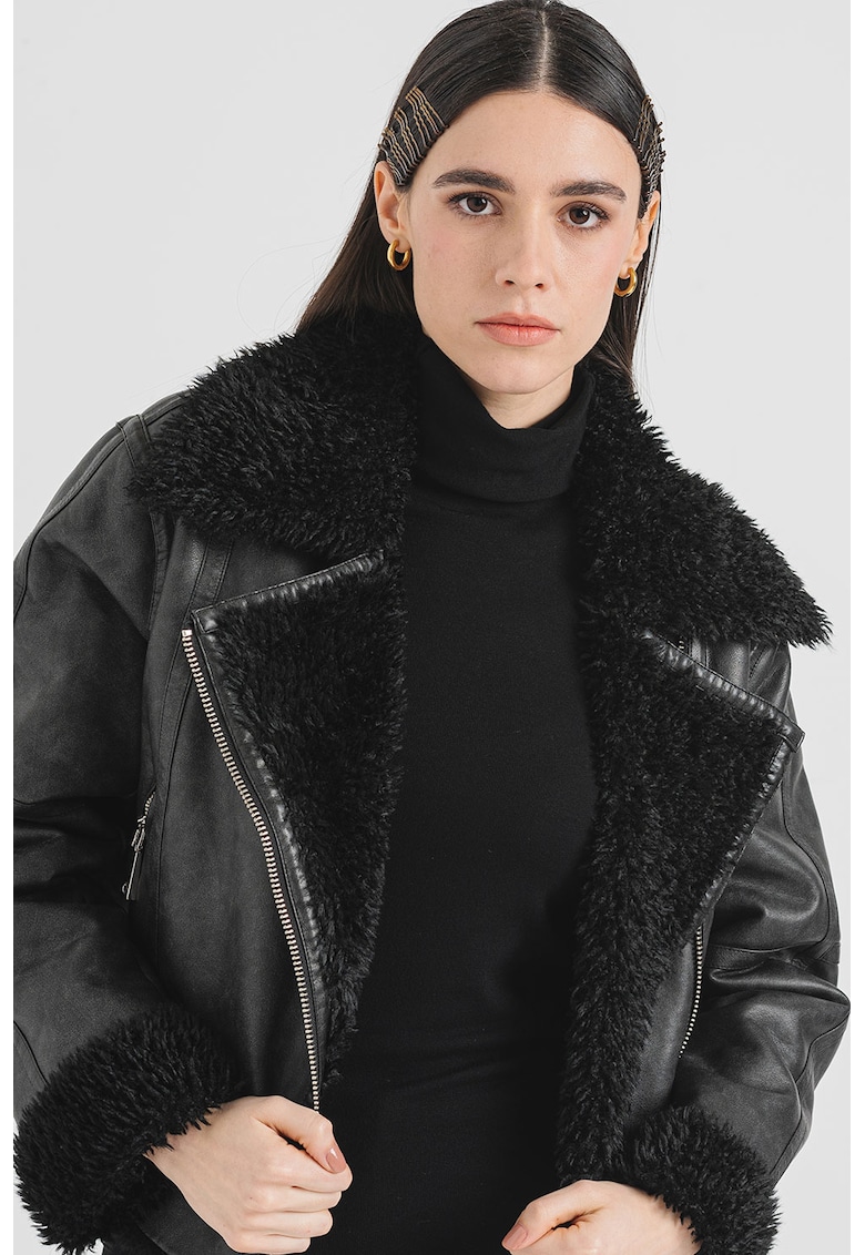 - gri inchis Imprimeu: uni Material: piele ecologica Croiala: regular fit Guler: cu revere Lungime maneca: maneca lunga Sistem inchidere: fermoar Compozitie Exterior: poliester cu pelicula de poliuretan Info model Modelul poarta un produs de marimea S/38 IT. Marimi model: 177 cm inaltime
