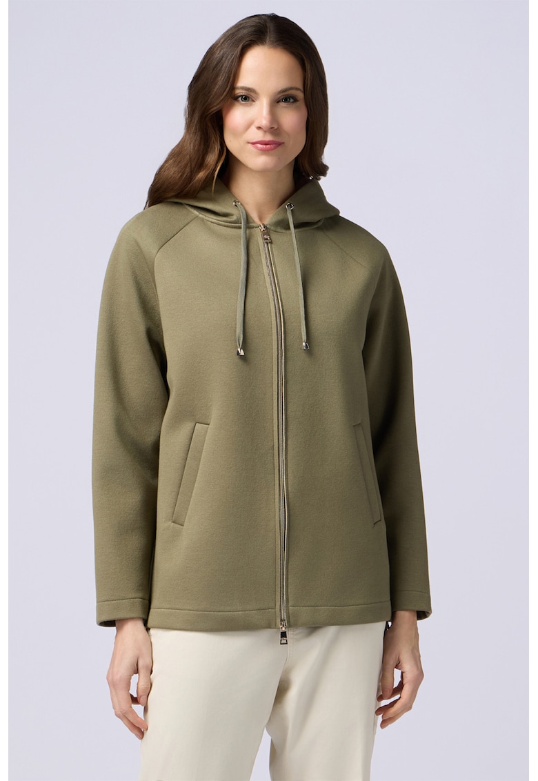Caracteristici Tip produs: jacheta Culoare: verde sparanghel Imprimeu: uni Material: viscoza Croiala: lejer Gluga: cu gluga Maneci: raglan Lungime maneca: maneca lunga Buzunare: 2 oblice Detalii: terminatie ajustabila Sistem inchidere: fermoar Compozitie Exterior: 97% viscoza