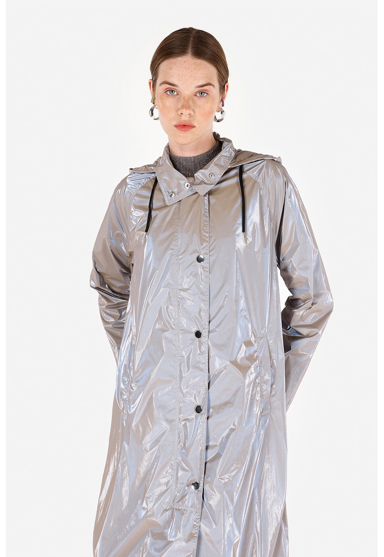 Caracteristici Tip produs: jacheta Culoare: argintiu Imprimeu: uni Material: poliuretan Croiala: lejer Guler: inalt