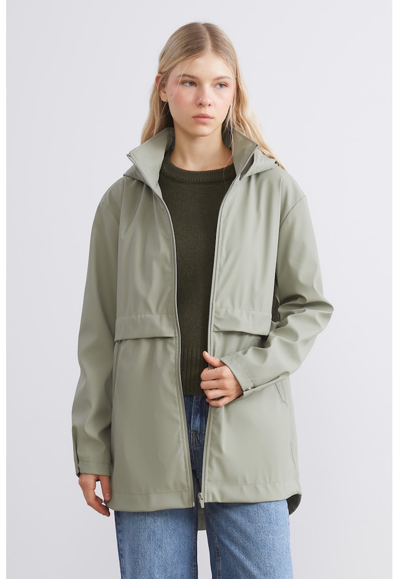 Caracteristici Tip produs: jacheta Culoare: verde pal Material: poliester Croiala: regular fit Imprimeu: uni Gluga: cu gluga Lungime maneca: maneca lunga Buzunare: laterale Sistem inchidere: fermoar Compozitie Exterior: 100% poliester Captuseala: 100% poliester
