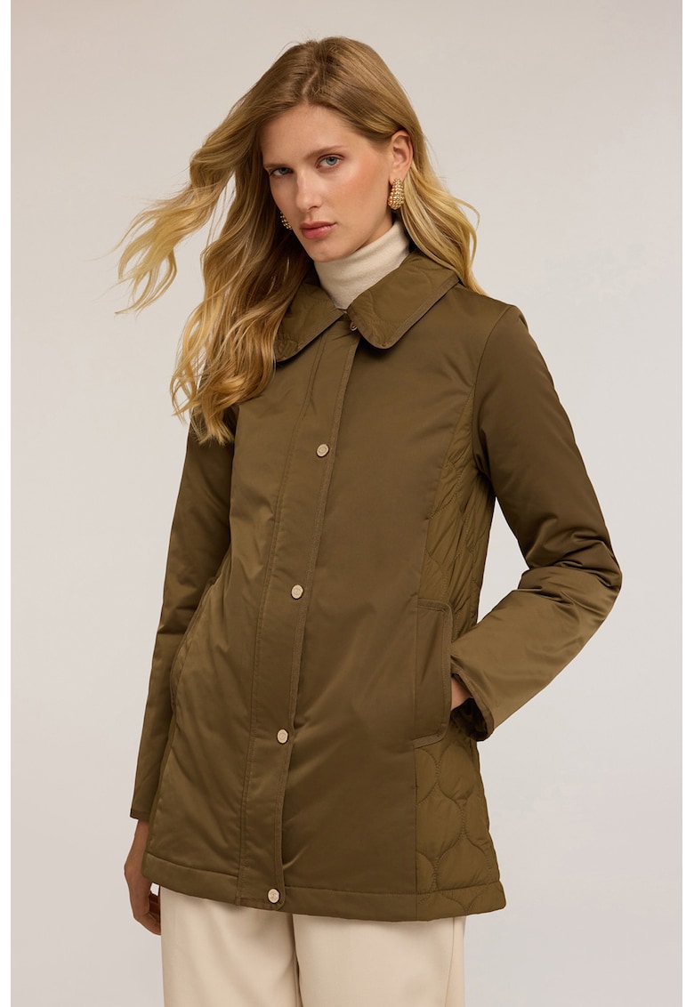 Caracteristici Tip produs: jacheta Culoare: verde masliniu Imprimeu: uni Material: poliester Croiala: regular fit Guler: ascutit Gluga: fara gluga Lungime maneca: maneca lunga Sistem inchidere: fermoar Compozitie Exterior: 100% poliester Captuseala: 100% poliester Umplutura: 100% poliester