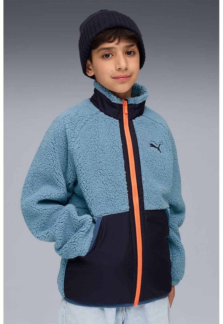 Caracteristici Tip produs: jacheta Culoare: albastru prafuit Imprimeu: uni Croiala: regular fit Material: poliester Buzunare: 2 oblice laterale Lungime maneca: maneca lunga Sistem inchidere: fermoar Colectie: toamna